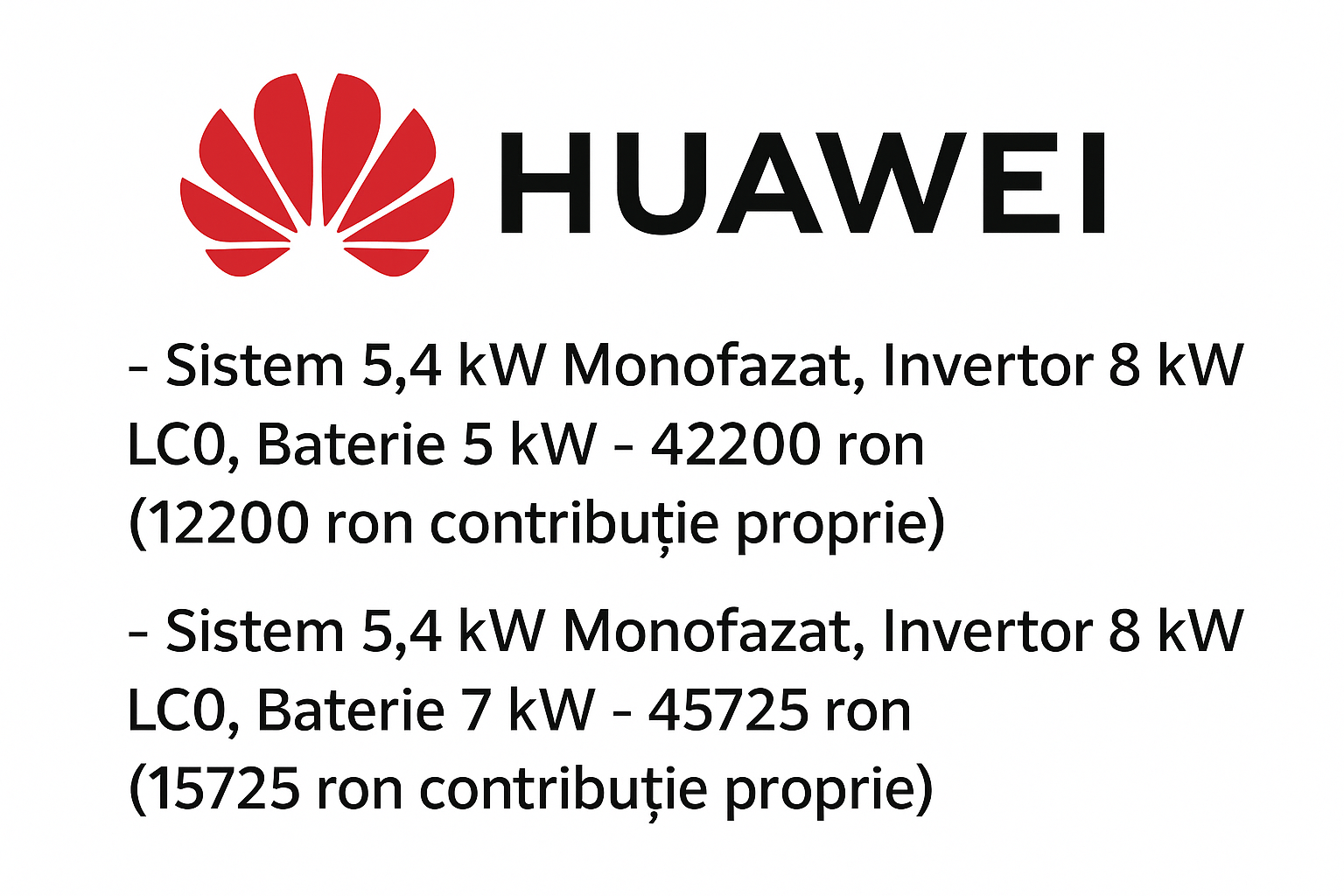 *PREȚURILE INCLUD TVA 21% PENTRU PERSOANE FIZICE. PREȚUL INCLUDE ȘI FINANȚAREA DE 30000 RON DE LA Fondul de Mediu.